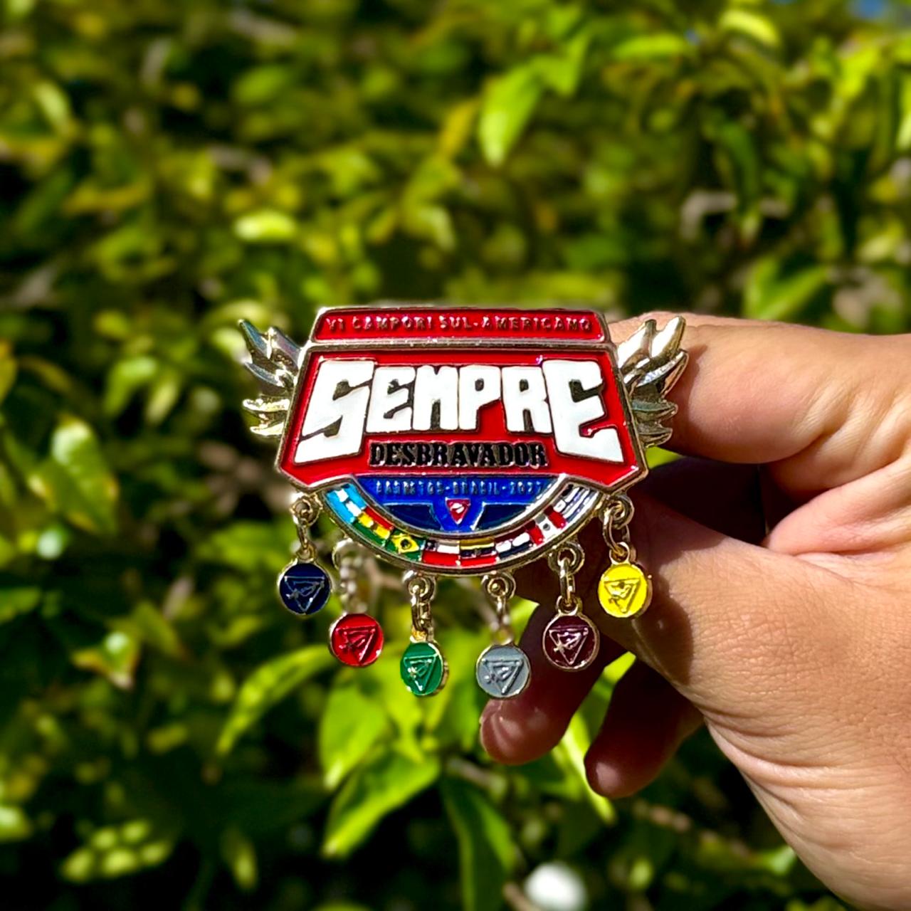 ARGANÉU/PRENDEDOR DE LENÇO, CAMPORI DSA 2027 ATUALIZADO LOGO DIMINUIDO, COM CLASSES E BRILHA NO ESCURO