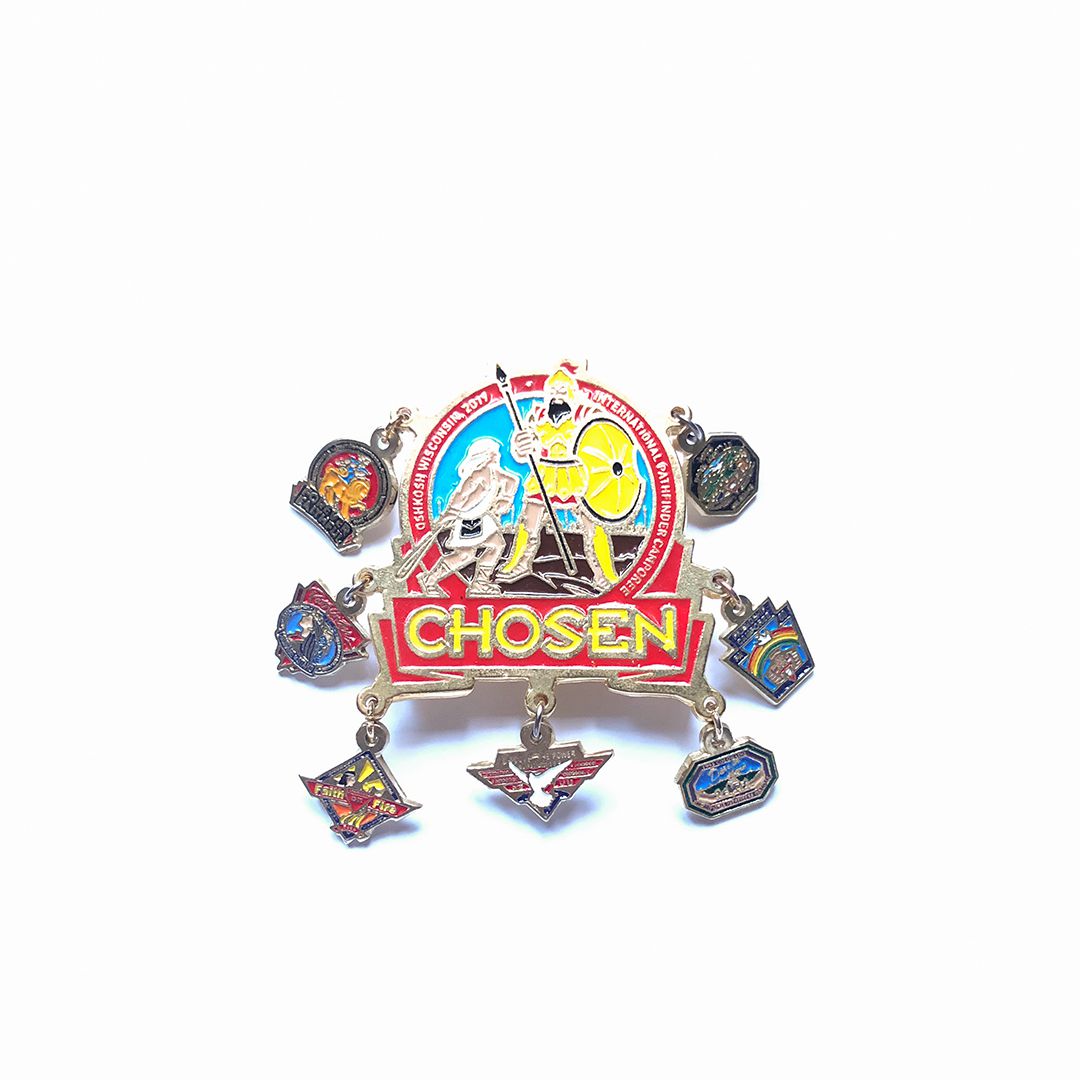 Pin, Chosen, com sete pingentes de eventos anteriores